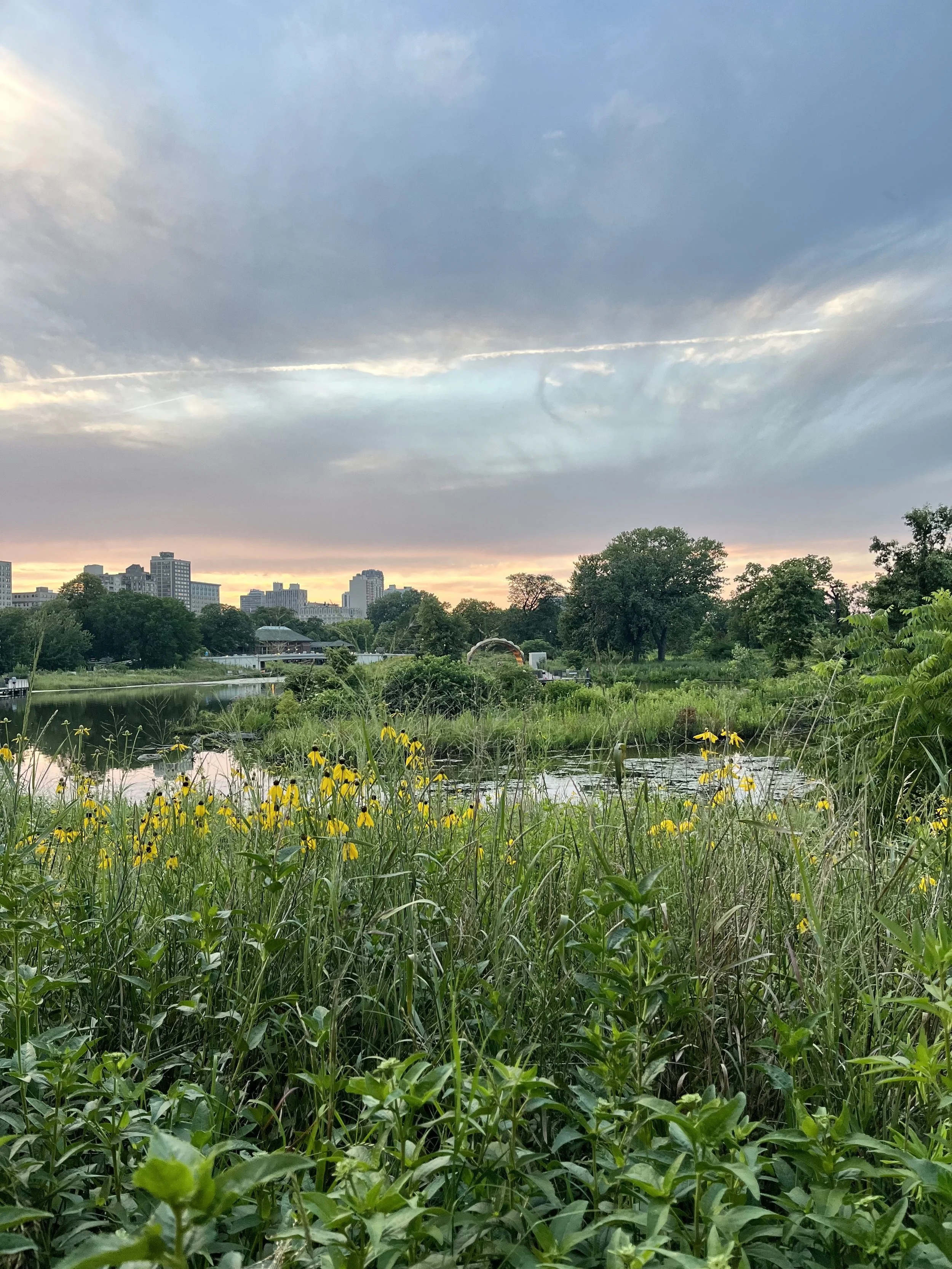 Lincoln Park (Zoo) Perfect for all seasons and feel like you are taken out of the city. The walk around south pond is breath taking, just watch out for the red wing birds! Right by the free zoo and lakefront to continue your walk as you please.